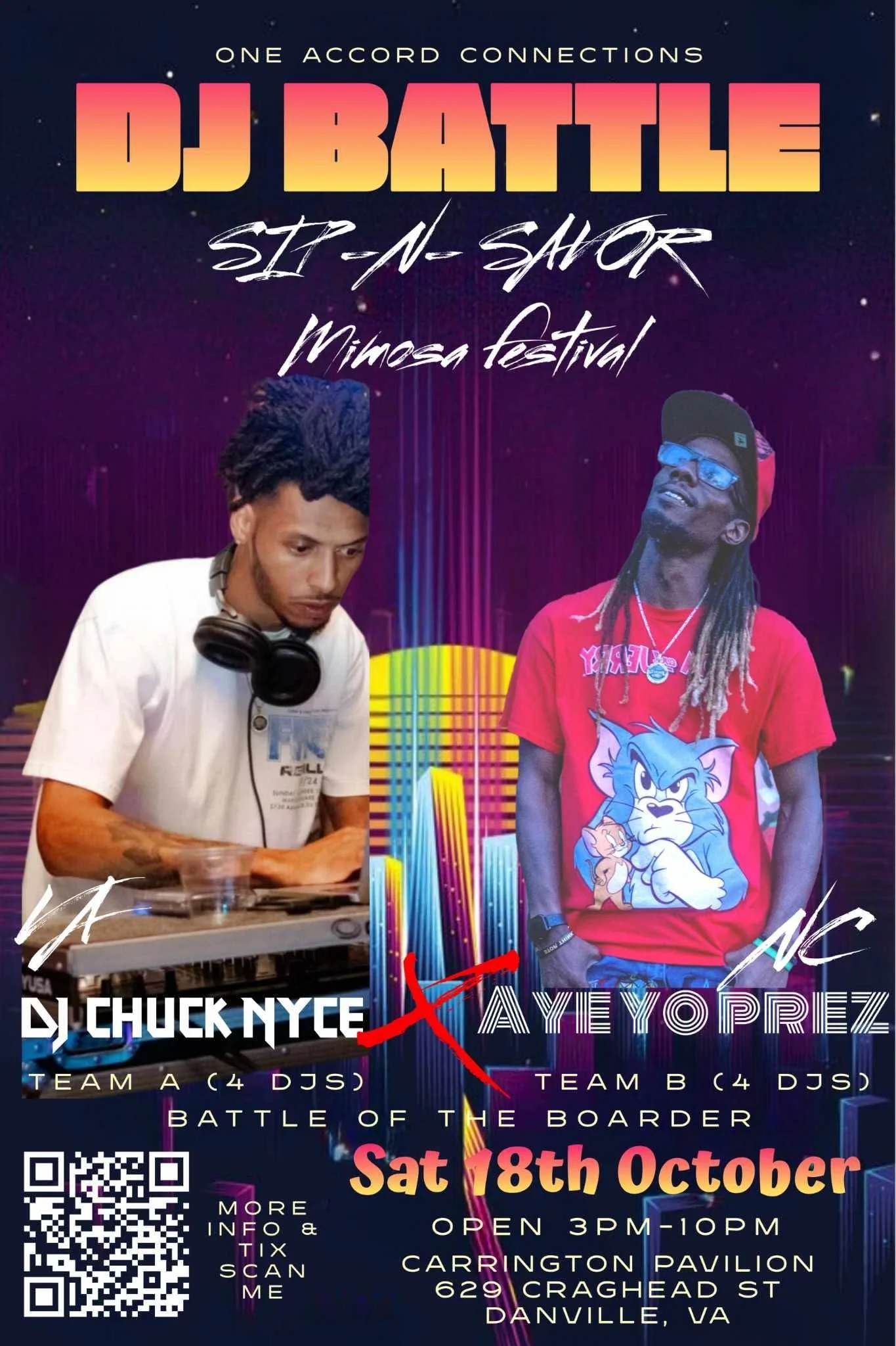 Four powerhouse DJs from Virginia and North Carolina are set to collide in a high-energy, bass-thumping battle to claim the title of Battle of the Borders champion. Whether you're here to cheer for your home state or want to vibe with the hottest mixes, this is one musical clash you won’t want to miss.